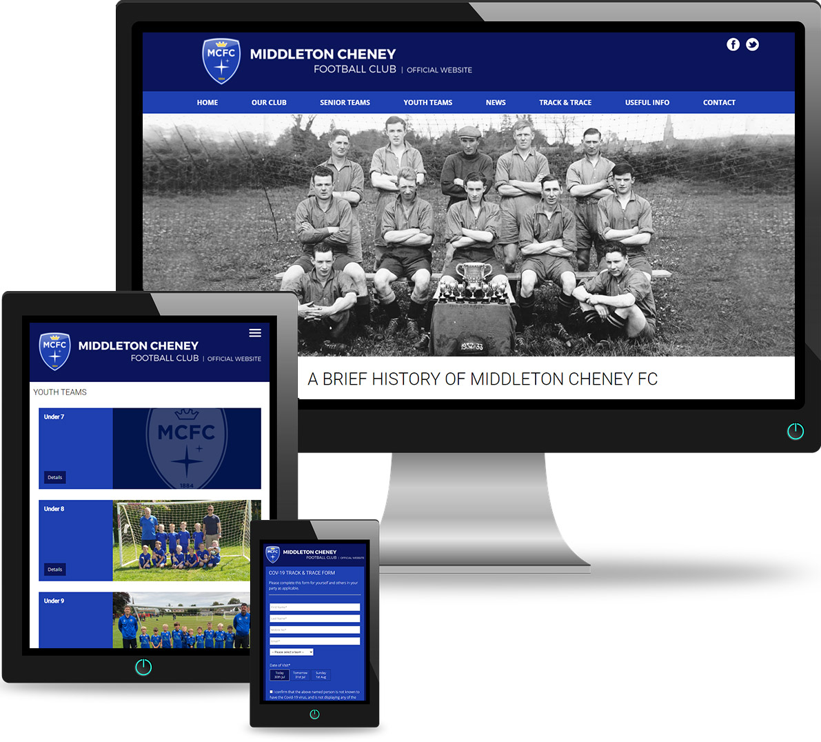 The Middleton Cheney Football Club website has a highly bespoke database underpinning its architecture to allow quick and easy maintenance of teams, players, news and more. It also integrates seamlessly with Twitter for news feeds but also the football league website to provide the latest results and fixtures information for the various teams.